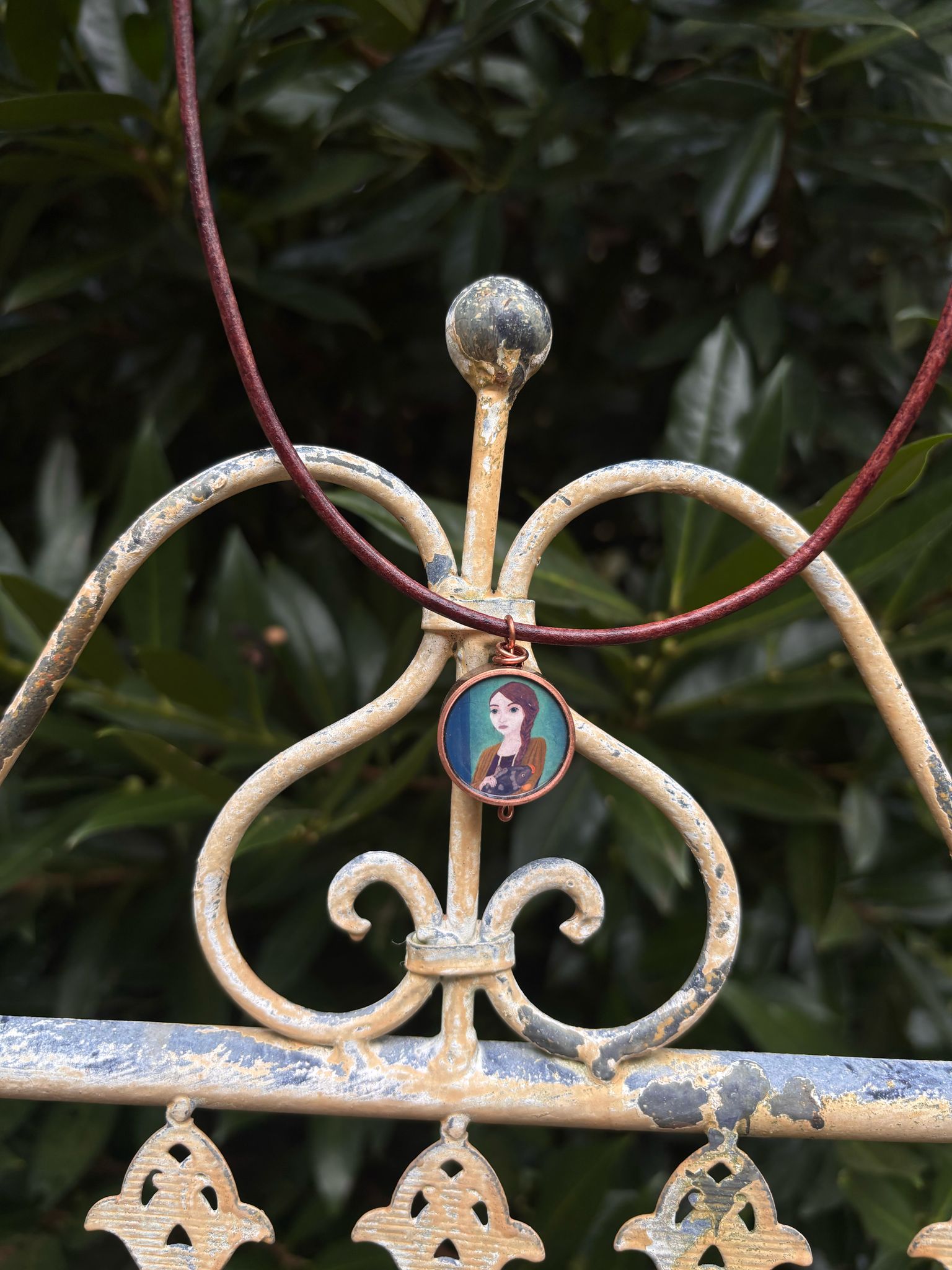 Originelle, handgemachte Schmuckanhänger mit Miniaturdrucken meiner Gemälde und Illustrationen die einfach gute Laune machen.
