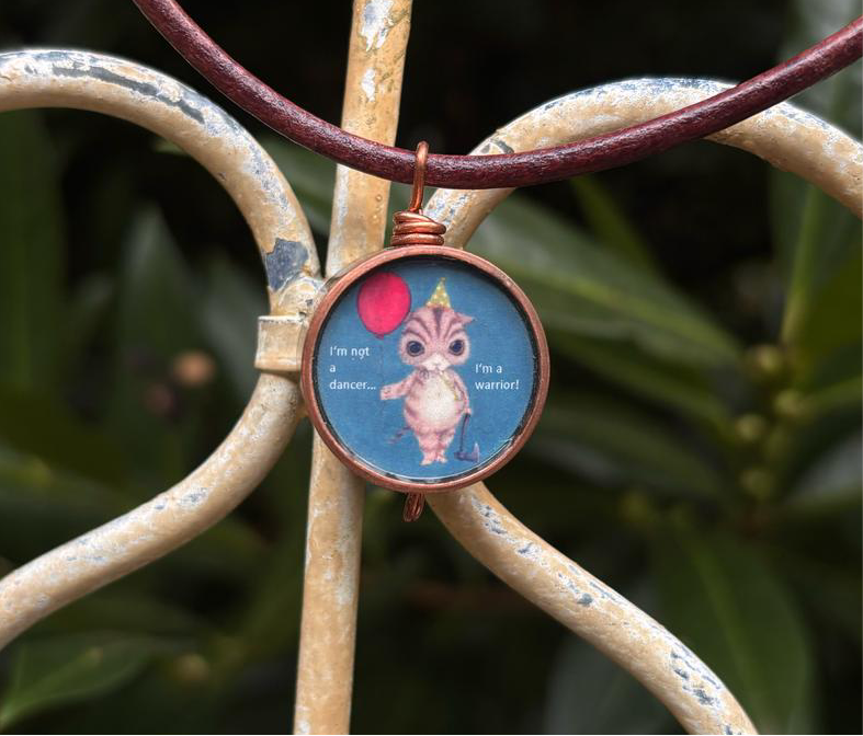Originelle, handgemachte Schmuckanhänger mit Miniaturdrucken meiner Gemälde und Illustrationen die einfach gute Laune machen.